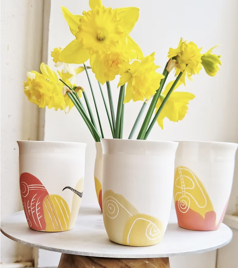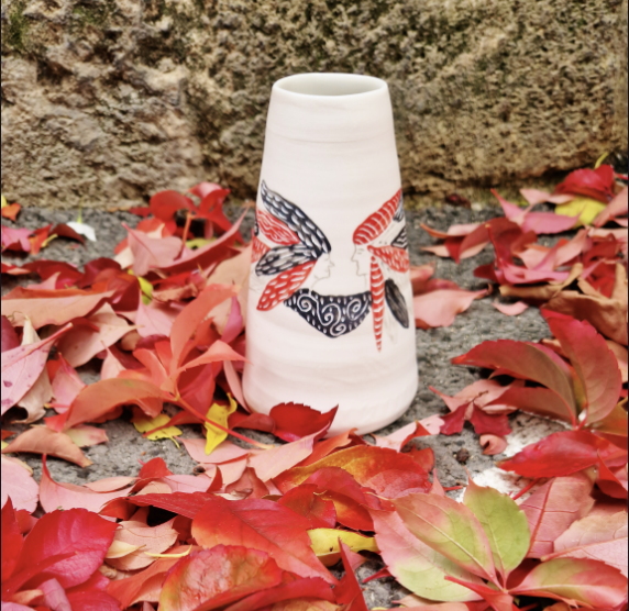 Je façonne la porcelaine et le grès en vaisselle et en déco. Je propose sur mes pièces des illustrations originales et poétiques.